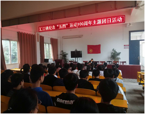 2019年为五四运动 100 周年,为激励和引领广大青少年大力弘扬以爱国主义为核心的伟大民族精神, 纪念五四运动 100 周年,近日,汇口镇团委开展以“青春心向党·建功新时代”主题团课进校园活动。