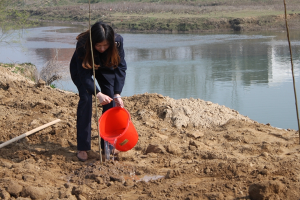 一到植树点,大家分工协作,甩开膀子,挥锹的挥锹,运苗的运苗,打水的打水,你扶苗,我培土……随着一道道工序的完成,一颗颗幼苗随风挺立。经过两个多小时热火朝天的“蛮拼”,“国税共青林”初现雏形。大家纷纷表示,以后我们每年都参加“美丽我家园”志愿活动,绿化家乡,美化家园,为建设“美丽宿松”添砖加瓦。