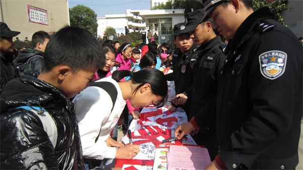 12月3日上午,在宿松县交警大队的大力支持下,宿松县松兹派出所、东北新城管委会和宿松禁毒办在县城人民路实验中学门前联合举行远离黄赌毒大型宣传活动。他们悬挂宣传横幅,摆放宣传展示牌,向学生及其家长发放宣传材料,介绍赌博、嫖娼、吸毒的危害,当众销毁赌博游戏近20台,1000多名学生及其家长和过往群众在“拒绝黄赌毒 共建和谐家园”的横幅上签字,表达他们远离黄赌毒的决心。活动取得了良好的效果,有效地教育了广大学生及过往群众。