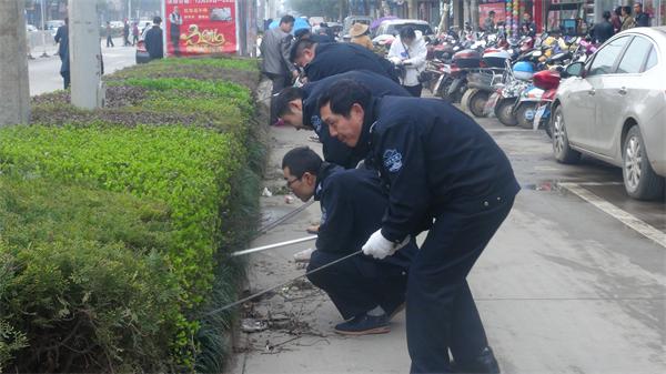 同日,县城管执法局30余名志愿者走上县城街头,以自身行动助推文明创建,手拿捡拾夹、铁锹对孚玉路绿化带内的垃圾进行清理,将人民路、宿松路安全岛冲洗干净。