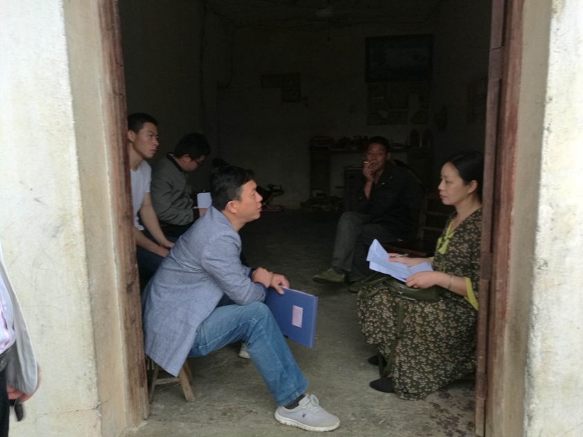 在荆安村下屋组曾传海家中,帮扶人、县城乡居保局党支部书记、局长熊兆红与曾传海兄长曾传火亲切交谈,嘘寒问暖、拉起家常,了解其家庭收入、开支等实际情况。曾传海因家境贫寒、家徒四壁,已离异,自己独身在新疆打工,孩子在读小学三年级,不得不托付其兄长照顾。