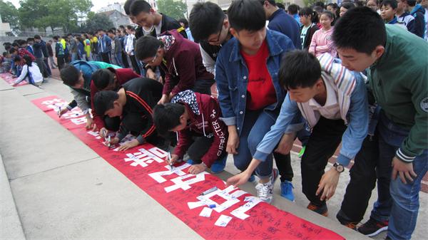 为让广大教师和学生养成良好的文字书写和语言交流习惯,近日,宿松县实验中学积极开展创建安庆市语言文字规范化示范学校活动。要求大家说好普通话,写好规范字,积极投身安庆市语言文字规范化示范学校创建活动。该校利用电子显示屏、班会课和早会,向学生宣传语言文字规范化的积极意义;开展书法比赛,要求用楷体字书写,近百名选手获奖;在横幅上签字,表达学生说普通话写规范字的决心。图为4月11日早会时学生签名活动情景。