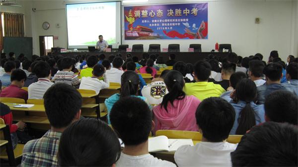 中考临近,为让孩子们在后阶段有效地进行学习,积极地应对中考, 5月16日下午,宿松实验中学邀请安徽大学心理研究所高志强教授来校做《调整心态 决胜中考》的心理辅导专题报告。讲座内容包括中考心理状态的重要性、良好中考心理状态的标准、 考试焦虑的种种表现、中考积极的心理状态的调适、考试中必要的心态。通过听取讲座,孩子们认识到心理状态的重要性,他们表示将及时地调整心理状态,信心满满地接受中考的检阅。该校毕业班1124名学生听取了报告。