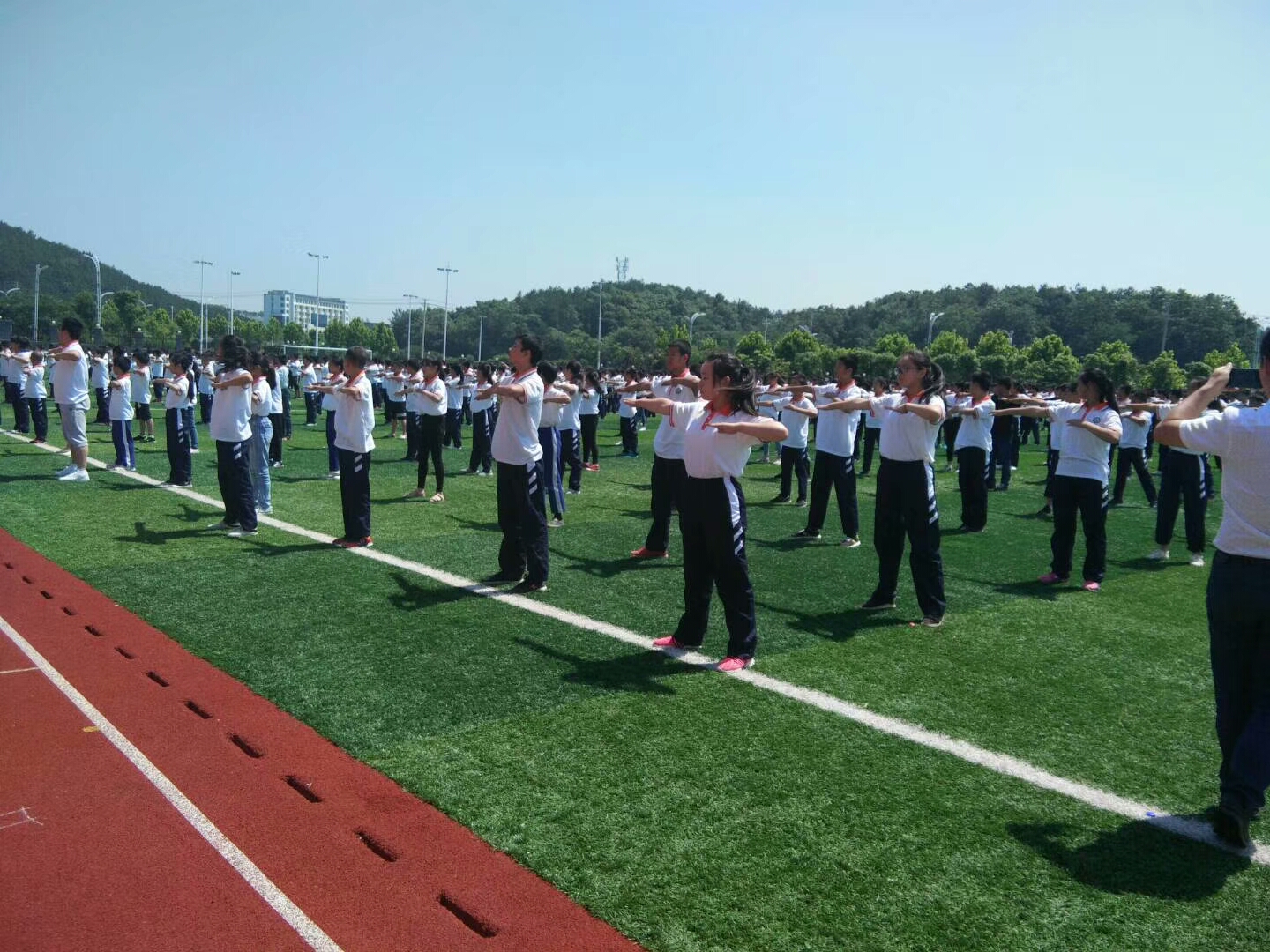 6月3日上午,实验中学新校区在运动场上开展了“最美大课间”拍摄活动。该校新校区28个班1500多名学生参加了拍摄活动。