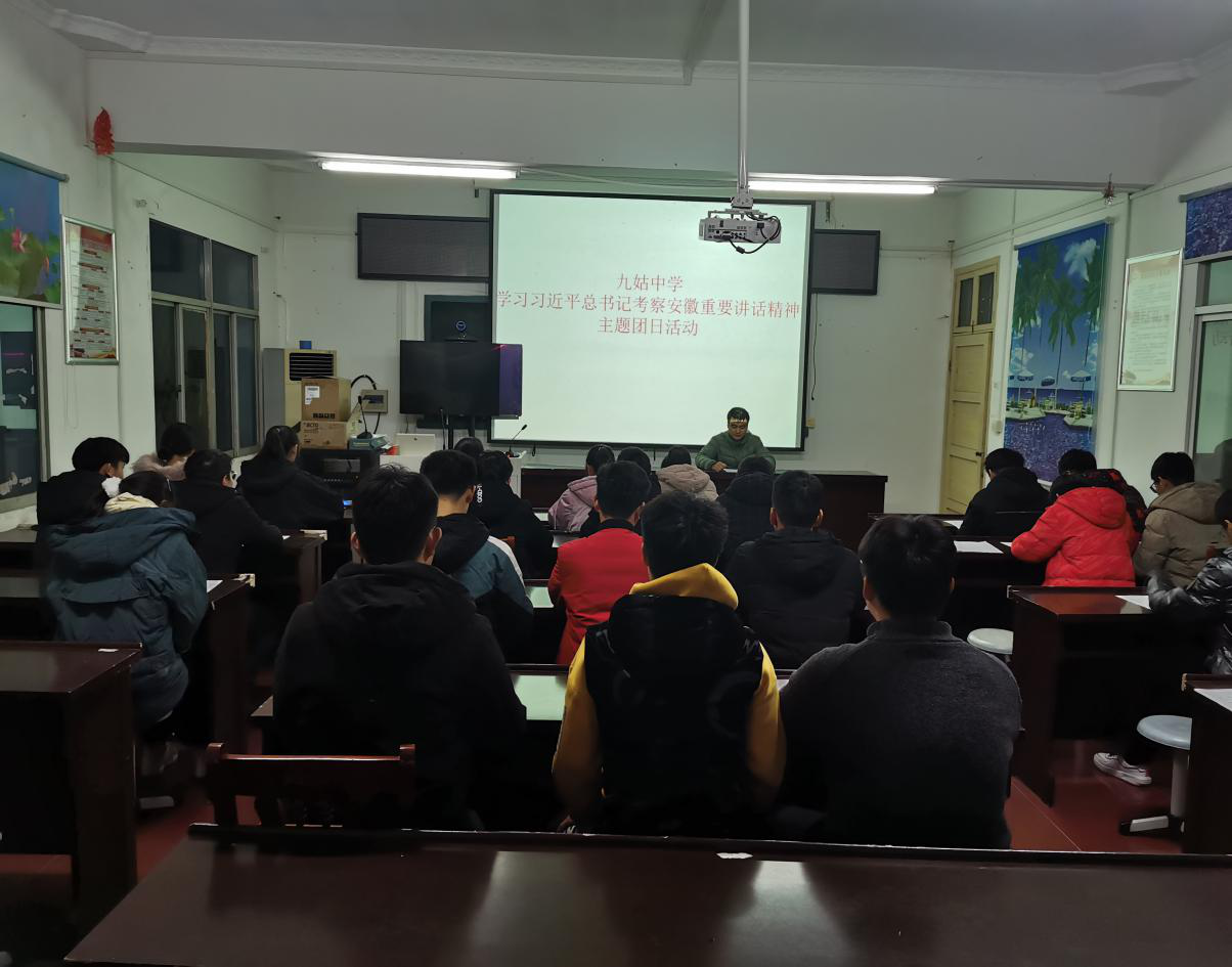 聆听时代强音,感受中国力量。11月25日晚,九姑中学团委组织青年团员开展主题团日活动——学习习近平总书记考察安徽重要讲话精神。校团委全体委员、各班团支部书记参加此次学习活动。