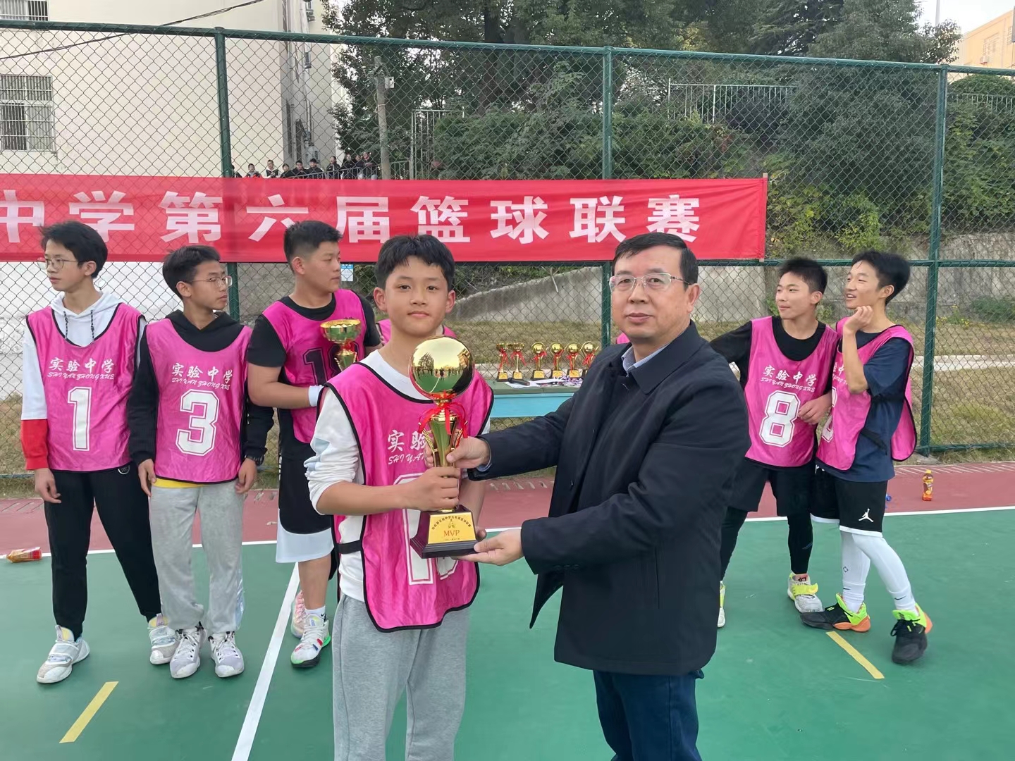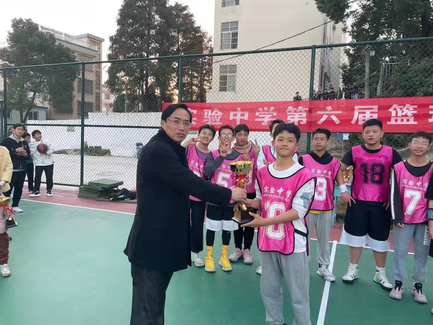 为落实“双减”政策,丰富同学们课后服务生活,给学生们提供一个展示青春风采的平台,11月18日-24日,实验中学团委成功举办了第六届学生篮球友谊比赛。该校主要负责人虞天赐、副校长刘奇春观看了篮球比赛,并给获奖班级和优秀运动员分别颁发了奖杯和奖牌。
