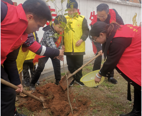 宿松县下仓中小少先大队开展“拥抱春天,播种希望”植树节活动