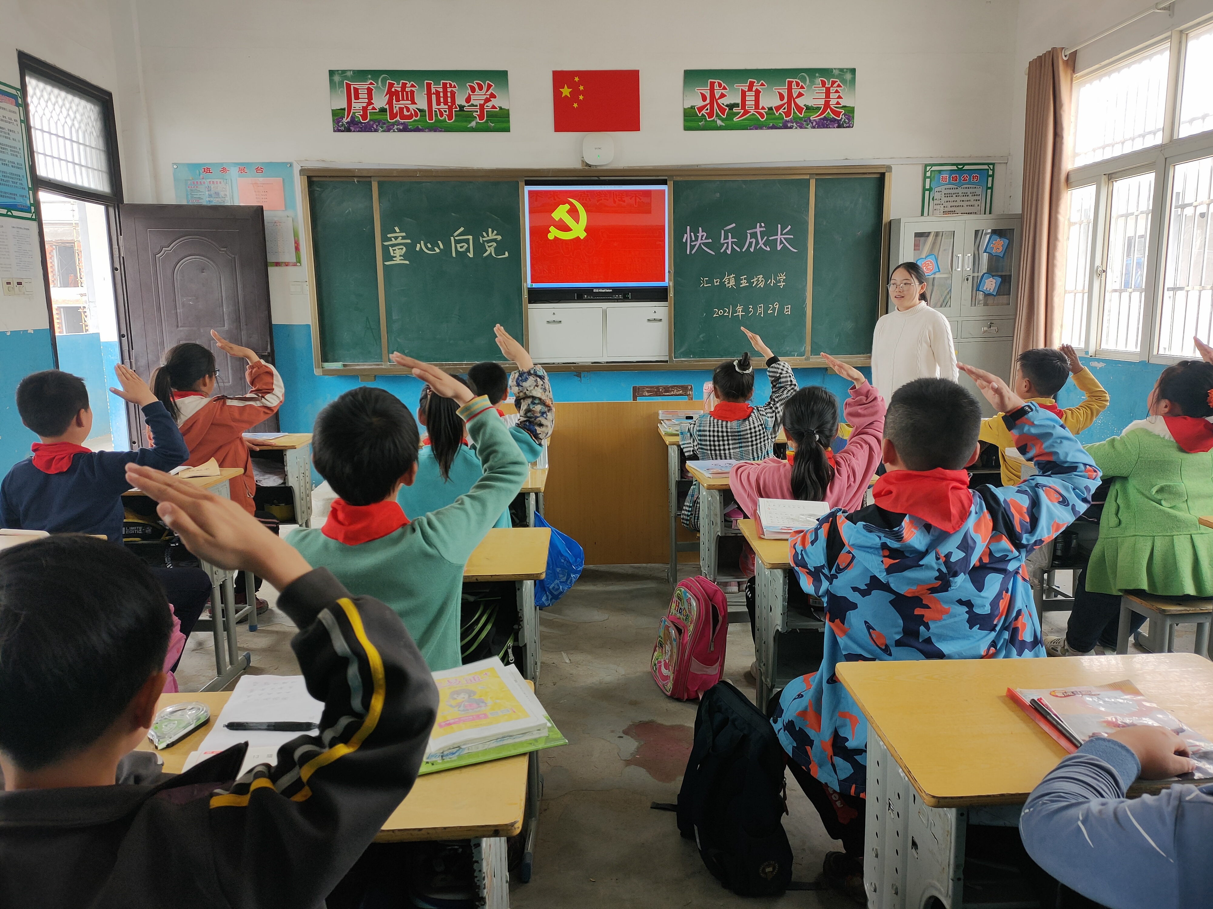 汇口镇五场小学少先队开展“童心向党,我向党旗敬个礼”主题队日活动