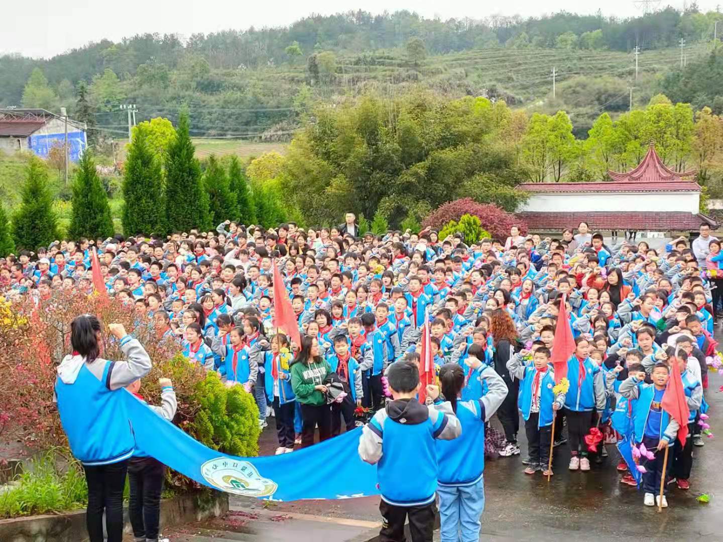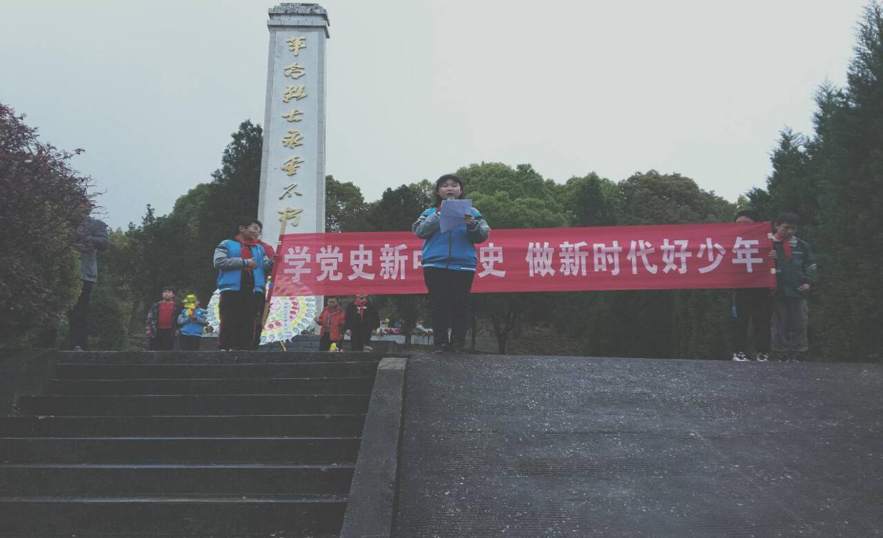 清明时节雨纷纷,路上行人欲断魂”又一个清明节来临,又一个祭祀革命烈士的日子到了。4月1日,隘口乡中心小学少先大队组织部分少先队员到隘口乡小圩村烈士陵园进行清明祭扫。下午,学校4—6年级全体少先队员,身着天蓝色的校服,佩戴鲜艳的红领巾,迈着整齐的步伐,从校门出发,各方阵依次前行。一路上,革命的歌声嘹亮,红扑扑的脸上充满革命的向往。