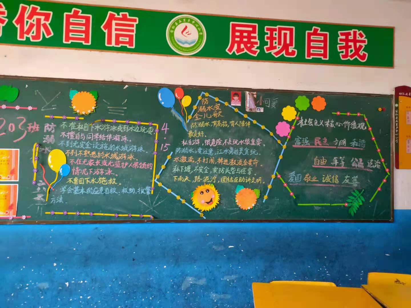 为进一步营造浓厚的安全防范氛围,学校精心制作了“防溺水”主题宣传版面板报,各中队通过办黑板报、手抄报的形式使安全意识深入到每一个师生的心中。同学在搜集材料、版面制作的过程中收获了许多安全知识;内容充实、画面优美的板报既装点了教室、丰富了班级文化,又时时向师生们发出注意生命安全的提醒。