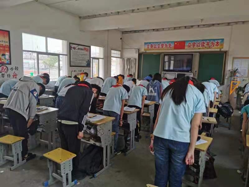 “科学探索无止境,在这条漫长而又艰辛的路上,我一直有两个梦,一个是禾下乘凉梦,一个是杂交水稻覆盖全球梦。”各班中队辅导员向少先队员们介绍了袁隆平院士生平,并用视频带领少先队员们了解他所做的伟大贡献。少先队员们向袁隆平爷爷敬队礼,鞠躬默哀。