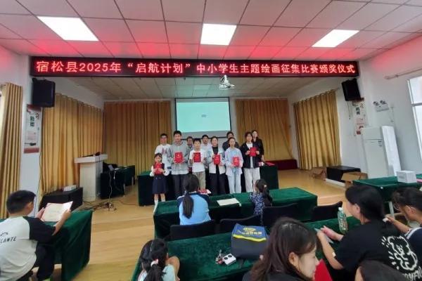 活动中,何晓介绍了本次比赛征集、评选情况,佘敏宣读了《关于公布宿松县2025年“启航计划”中小学生主题绘画比赛评选结果的通知》。随后,依次颁发优秀奖、三等奖、二等奖、一等奖。