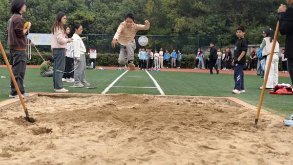 随着学校少工委主任宣布运动会开幕,赛场瞬间成为活力的海洋。中年级组的立定跳远、一分钟跳绳、100米跑项目率先开赛,小队员们个个精神抖擞。跳绳赛场,选手们脚下生风,彩色跳绳在空中划出优美弧线,计数声与加油声此起彼伏;100米赛道上,发令枪响后,队员们如离弦之箭般冲刺,稚嫩的脸庞上写满坚毅。高年级组的比赛更是精彩纷呈,4×60接力跑中,队员们默契配合、精准交接,每一次接力棒的传递都凝聚着团队的力量;拔河比赛现场最为热烈,8人组成的参赛队伍紧握长绳,身体后倾、齐心协力,场边观众齐声呐喊助威,红色的队旗在人群中迎风飘扬,将气氛推向高潮。