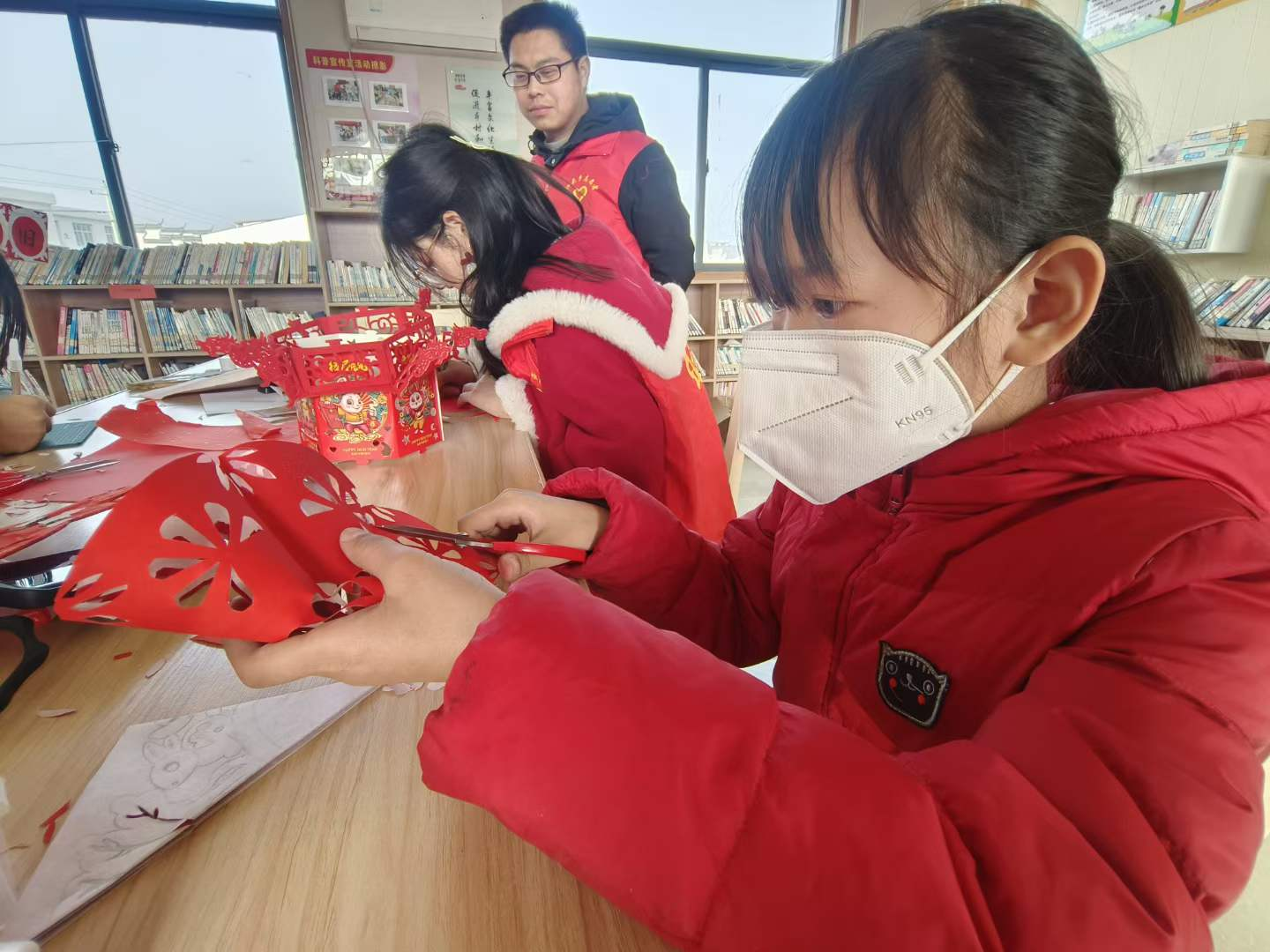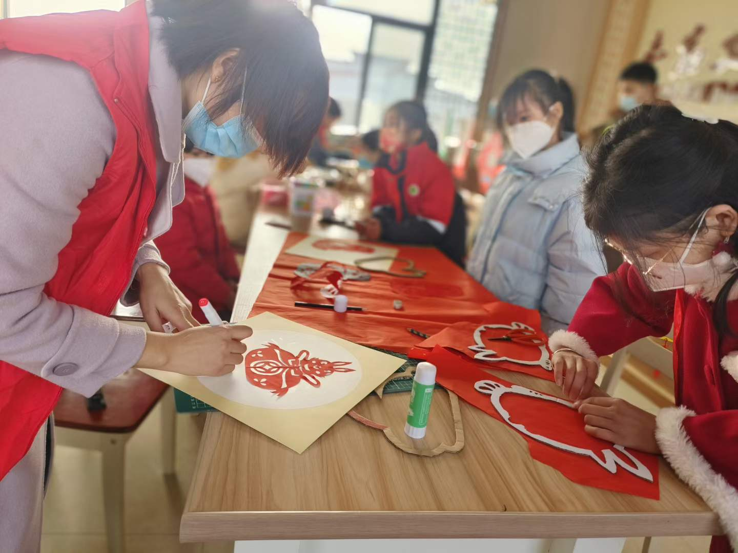 2023年1月10日,在安徽省安庆市宿松县洲头乡金坝村复兴少年宫里,“非遗”剪纸志愿者与村10余名留守儿童一起,以兔为主题,制作萌味十足、活泼可爱的兔年主题窗花剪纸作品、新春灯笼、萌兔手绘画等,现场一片喜庆景象。剪纸是国家级非物质文化遗产,大家以传承和宣传“非遗”文化的形式来迎接新年的到来,表示对新年的美好祝福。(袁洁)