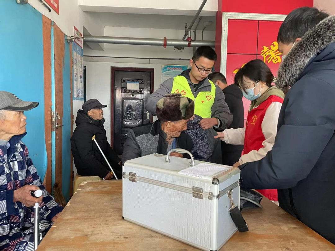 医护人员还为敬老院老人做了基本的健康检查,在工作人员和志愿者的搀扶下,大家有序测量血压;对于患病卧床、行动不便的老人,携带仪器设备进行“床前探视”。
