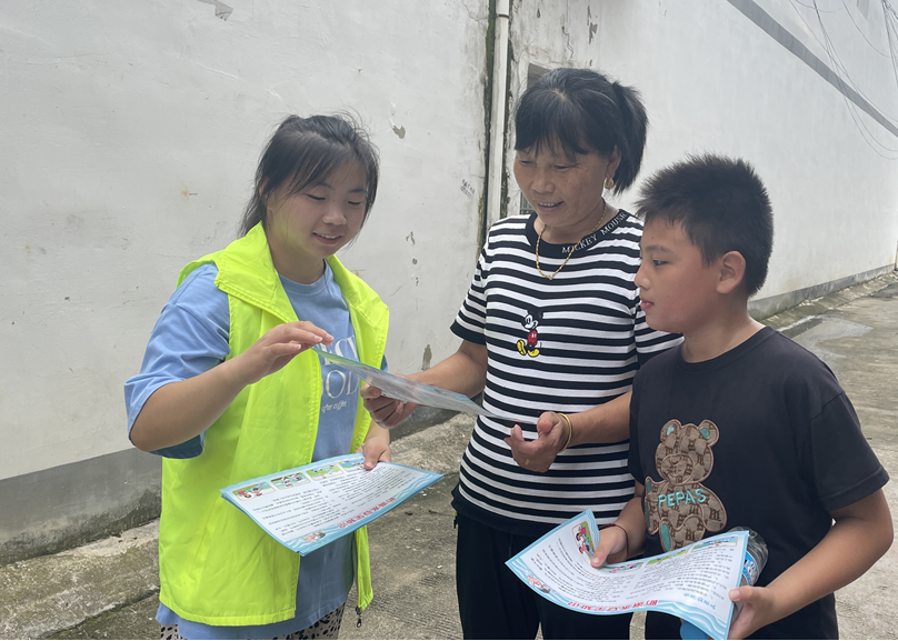 “我们每天早上八点多就到乡里集中,两人一组,深入各家各户进行防溺水安全教育宣传,提醒家长和小朋友们要远离危险水域。我觉得做这些志愿活动,对于我们青年来说,也是力所能及的事情,希望我们的宣传,能够增强家长和小朋友们的防溺水意识,使家长和孩子牢固树立‘安全第一,预防为主’的忧患意识。”陈蕾说道。
