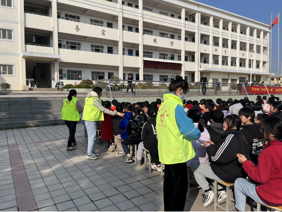 在许岭初中,志愿者们向学生们发放了志愿活动宣传折页,并宣讲了雷锋的光荣历史。
