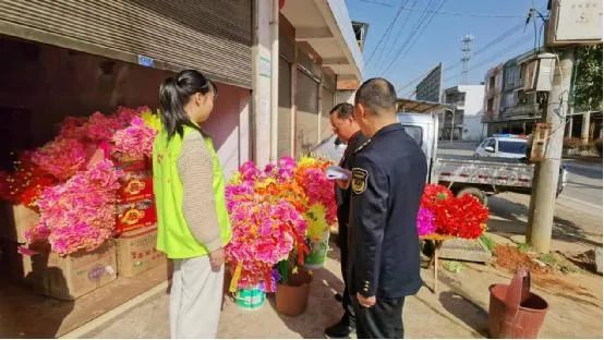 清明节将至,为加快推进移风易俗,积极倡导绿色低碳祭扫,树立文明祭祀新风,3月14日,千岭乡团委组织青年志愿者会同乡民政办、应急办、市监所联合开展“塑料花”等封建迷信殡葬祭祀用品专项整治行动。